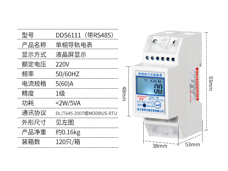 型號:DDS6111-2單相導軌電表(RS485)